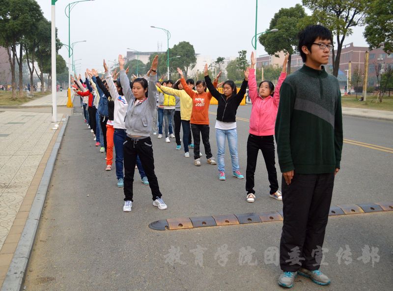早晨六点二十,风雨球场上他们已凌风而立,夜晚七点三十,他们又已开始练习。成功入围教育学院校运会广播体操队和太极拳队的运动员们,从10月12号起,他们充满活力的训练身影,早已成为校园秋风里一道亮丽的风景。