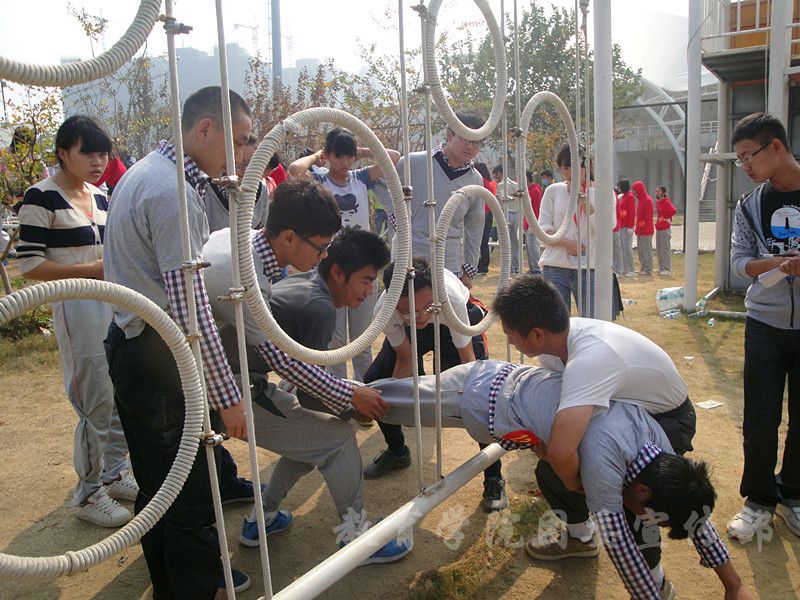 在竞技比赛过程中,教育学院选手齐心协力,团结合作,共度难关。在第一项匍匐前进中,教育学院取得通过9人的好成绩。虽然“匍匐前进”是最耗体力的项目,但是同学们始终精神饱满,立即进行第二项最考验团队合作默契度的项目,在一个个的小洞中接过一个又一个的队员,这个过程紧张而有序,最终教育学院通过7人。
