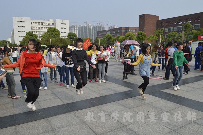 正是春天好时节,为响应学校的“三走”口号,倡导健康快乐的生活,提高学生整体身体素质,4月15日下午,教育学院携手免费师范生学院在青年文化广场举办“欢乐跳绳”健身游戏,让师大学子尽情挥洒运动的汗水。
