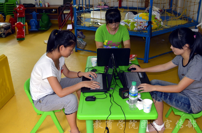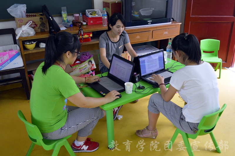 7月8日中午一点,教育学院“蓝心”青年志愿者服务队的队员们吃完午饭后来不及午睡一会就又来到了井冈山黄坳乡中心幼儿园教师办公室,为接下来的授课活动及时做好备课和总结工作。