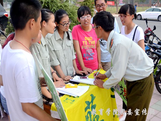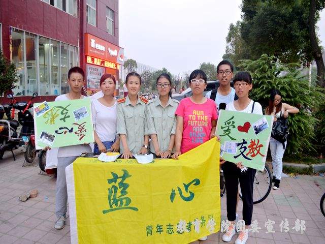 2014年9月26日,我院蓝心服务队开展了面向全校的招收志愿者活动,并在二食堂门口设点招募,志愿者实践内容包括爱心支教活动和爱心家教活动。