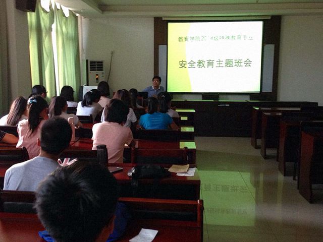 为了增强大学生安全意识及提高网络的使用文明素质,2014年10月10日下午4点三十分,2014级特殊教育专业班在教育学院S401召开以“安全教育”为主题的班会。党委副书记兼班主任秦明鹏主持此次班会。