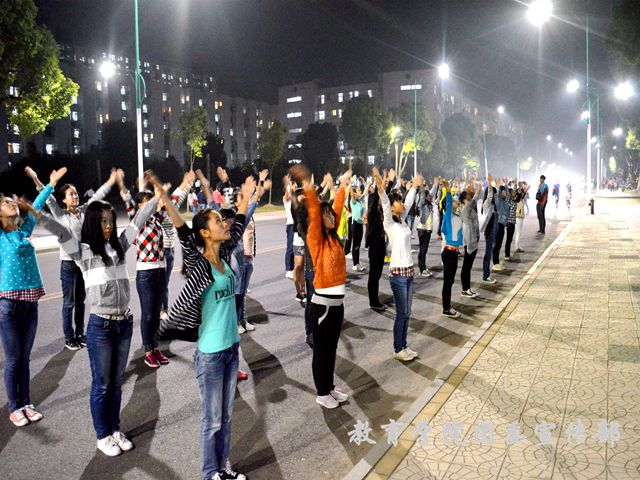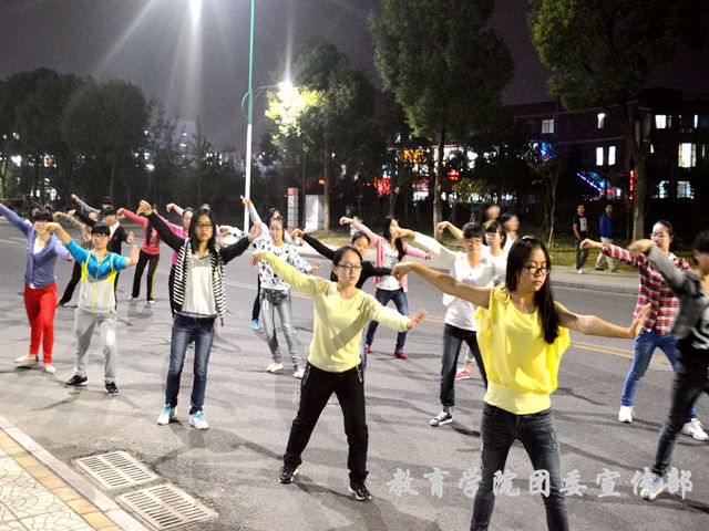 为在校运会上亮出学院集体项目的风采,规范参加集体项目的运动员们的动作节奏,9月28日起,教育学院积极组织参与集体项目太极和广播操的学生于图书馆门口的场地训练。