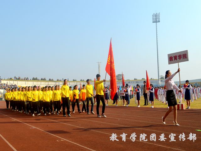 “青春如火,超越自我,缤纷师大,教育先行”教育学院方阵队伍的嘹亮口号点燃着运动员心中的激情,在运动场上留下美丽的身影,绽放着青春的风采。伴随着开幕仪式的结束,个人项目竞赛也将有序展开,希望教育学院参赛运动员能取得优异成绩!(文/图 教育学院团委宣传部)