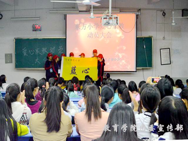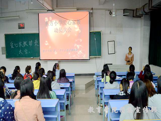 为提升家教志愿者的素质,增强他们对家教活动的了解,同时确保爱心家教活动顺利进行。10月29日晚七点,教育学院“蓝心”服务队组织的东方小学爱心家教动员大会在惟义楼W7502顺利举行。