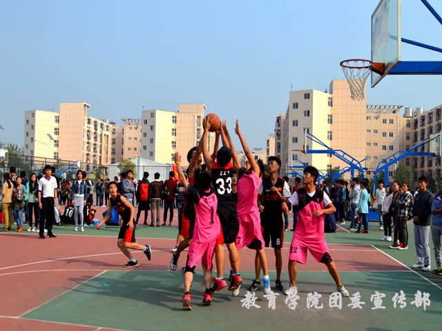 天公作美,天气晴朗,阳光明媚。两支代表队早早就来到风雨球场进行赛前热身活动。一切准备就绪,随着裁判员的一声哨响,高高抛起的篮球点燃了本场篮球赛的激情,宣告了此次篮球赛正式拉开帷幕。代表队双方抢球、断球、防守、进攻;严守硬对、激烈争夺、默契传球、完美配合,赢得了场下观众们的阵阵喝彩声。球员们在团队的良好配合下采取不断进取,每分必争,以致双方比分多次打平,大家高呼呐喊。其中,防守拦球以及抢球罚球场面更是将全场氛围领向高潮,两院实力不分伯仲,比赛进入白热化阶段。最后,在一声悠长而有力的口哨声中,本场篮球赛顺利结束,教育学院以23比21的比分险胜外国语学院。