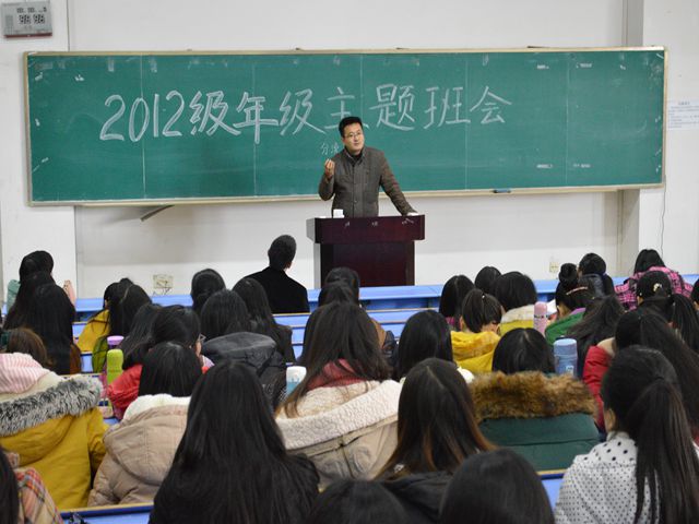12月17日中午12点半,在惟义楼7201教室,教育学院2012级全体学生召开了年级主题班会。院党委副书记秦明鹏、院团委书记李海红和2012级小学教育班主任赵志纯出席了本次会议。