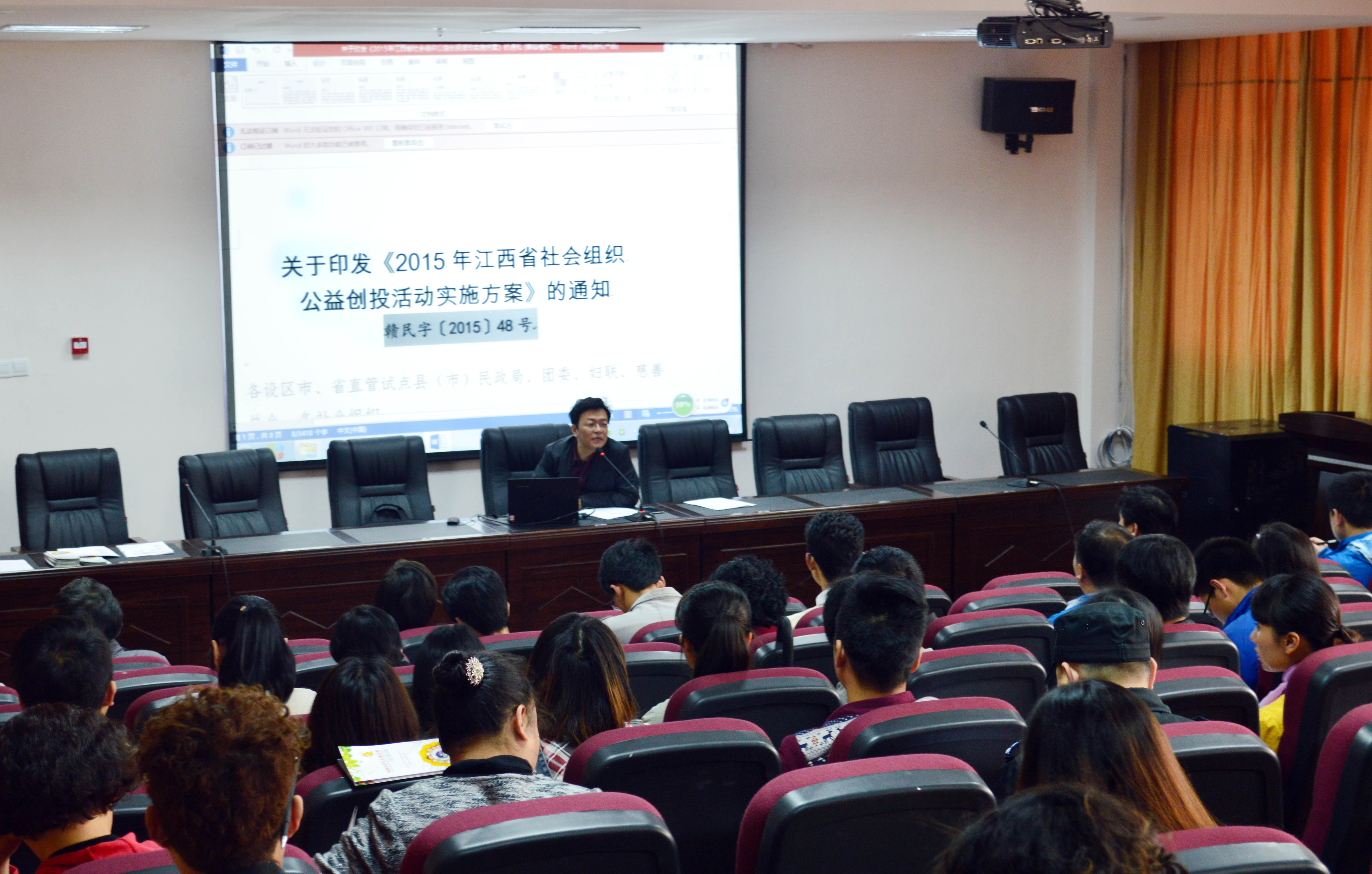 2015年4月15日,江西师范大学教育学院蓝心青年志愿者服务队应南昌市妇联的邀请,以江西师范大学公益社团身份参与2015年江西省公益创投项目培训活动,南昌市民政局熊健平处长出席并发表讲话。