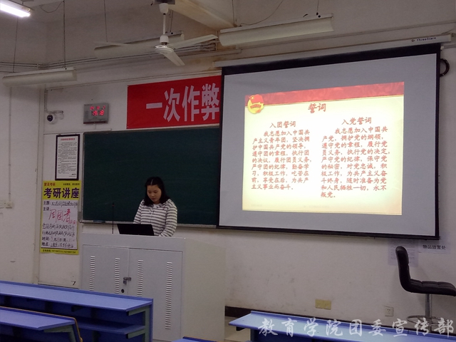 4月19日晚七点,16级公共事业管理专业的全体共青团员在惟义楼1507教室举行了以“怎样做一名合格团员”为主题的班会,会议气氛良好,同学们积极参与。
