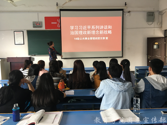 为深化“一学”学习教育,扎实推进“一做”实践活动,4月20日,14级公共事业管理班团支部在惟义楼4201举办了“学习总书记讲话 做合格共青团员”专题组织生活会。此次会议由14级公共事业管理班团支部书记徐添骄担任主讲,班级全体共青团员参与。