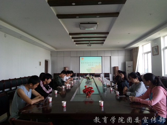 为了充分发挥学生会自我管理、自我服务、自我教育、自我监督的职能,完善学生会制度建设,及时发现各级学生会日常工作存在的突出问题,提高学生会的工作质量、工作水平,教育学院学生会积极配合校学生会开展“学生会工作督查周”系列调研活动,于4月22日上午9:00在教育学院s408开展了学生会工作反馈座谈会,学生会执行主席樊小星主持座谈会,校学生会常任代表委员范维、15、16级各班班委代表、学生代表参与本次会议,就学生会工作的问题进行讨论,提出众多意见和建议。
