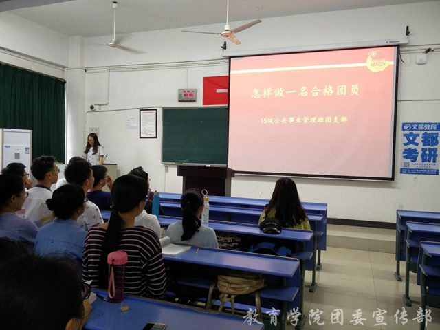 4月19日下午,15级公共事业管理班共青团员教育主题班会在惟义楼2407教室开展,本次班会由团支部书记冯家琪主持,15级公共事业管理班全体共青团员参与其中。