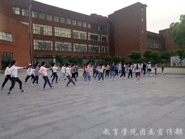 为迎接江西师范大学2017年春季运动会,教育学院参赛健儿们在学生会的组织下积极有序地投入训练。4月24日傍晚,在图文信息中心门口坪地,各运动员参与了本次集中进行的广播体操与太极拳训练。