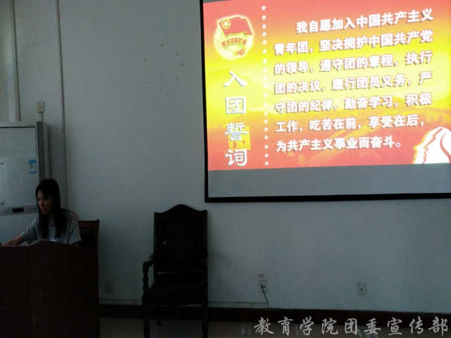 4月22日晚,教育学院15级学前教育一班“不忘初心,重温入党誓词”主题活动在教育学院422教室庄严举行。此次宣誓活动由学前一班团支书朱雅琪领誓,班级全体团员共同宣誓。