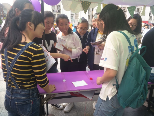 2017年5月9日下午2点,由江西师范大学心理教育中心主办,初教学院与美术学院共同承办的江西师范大学第十八届心理文化节——“我爱我,快乐自在我心”心理游园会于师大瑶湖校区青年文化广场热烈展开,全体师大学子参加到场。该活动由24个学院分别提供一个个人游戏,四个一组形成六个团体游戏。
