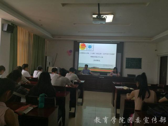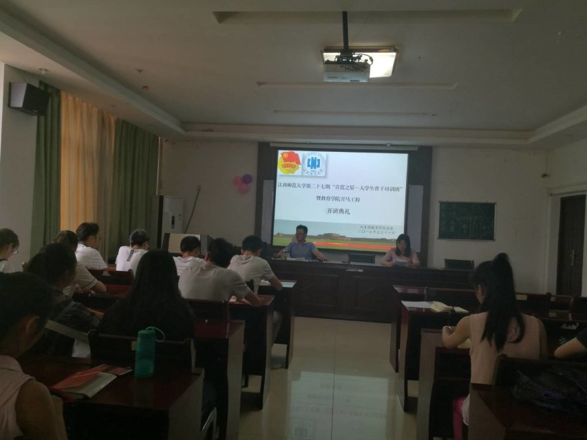 5月16日下午三点半,教育学院团委于学院S401报告厅举行了江西师范大学第27期“青蓝之星--大学生骨干培训班”暨教育学院青马工程培训大会,本次培训大会主要分为开班典礼及第一次授课。培训大会由教育学院党委副书记秦明鹏老师主讲、团委副书记曹烨老师主持,学院各组织、班级主要学生干部参与了本次培训大会。