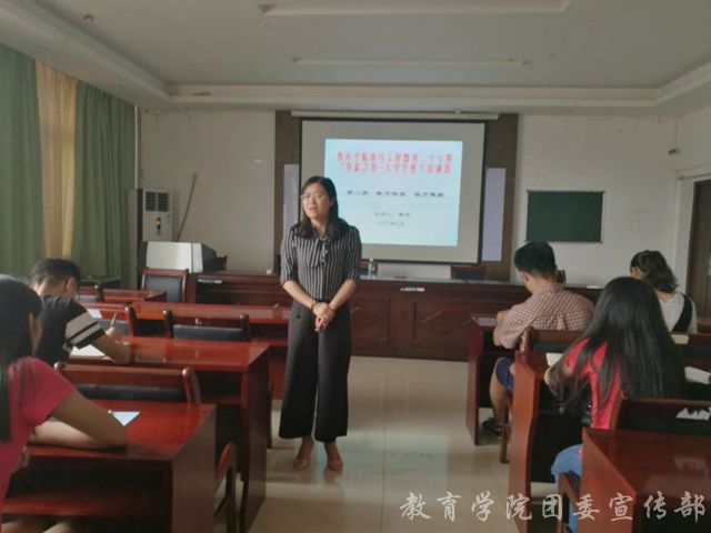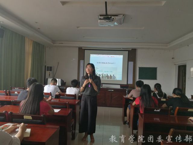 5月23日下午三点半,教育学院团委于学院S401报告厅举行了江西师范大学第27期“青蓝之星--大学生骨干培训班”暨教育学院青马工程培训班第二讲。培训班的第二讲由教育学院团委副书记曹烨老师主持,学院各组织、班级主要学生干部参与了本次培训课程。