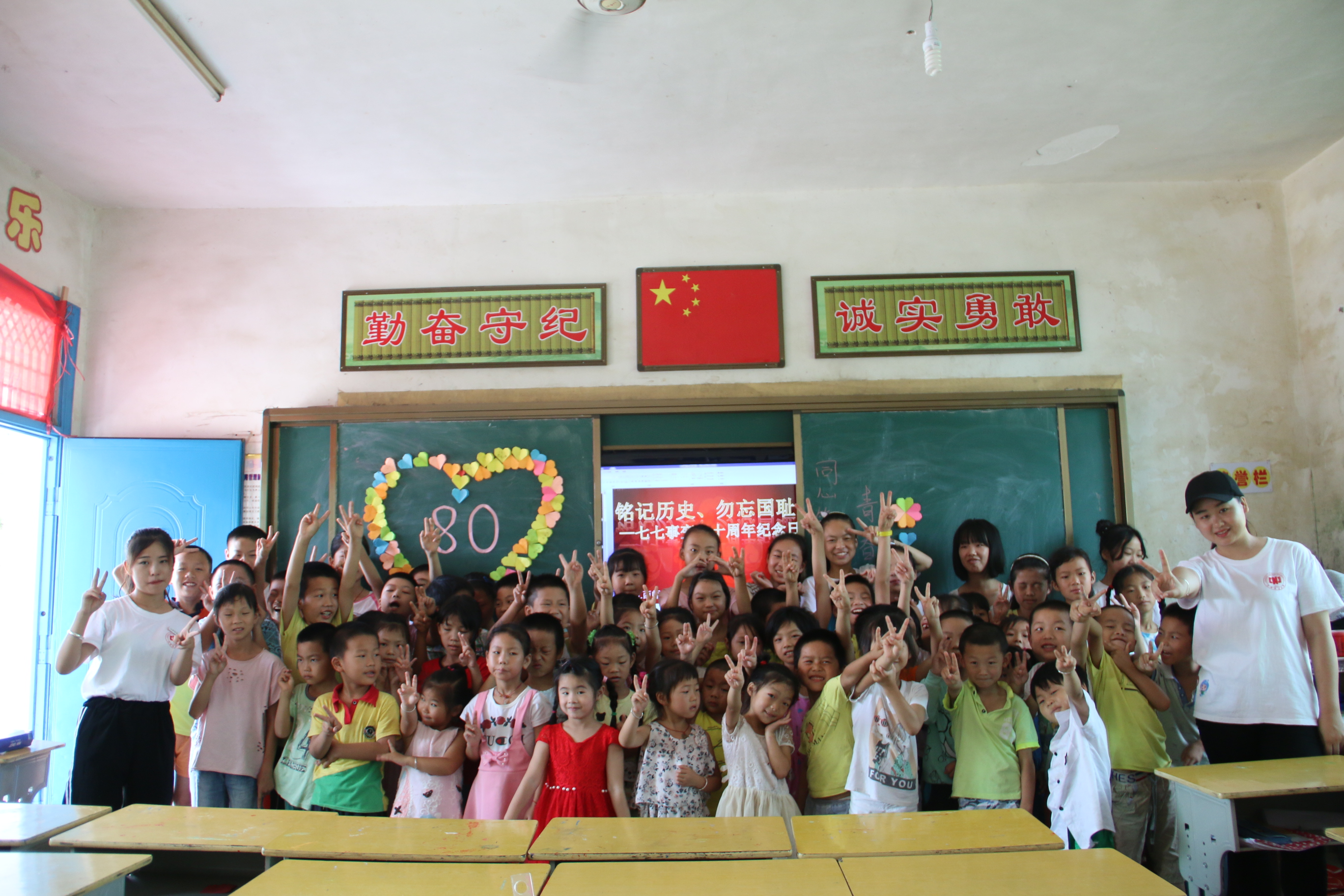 2017年7月7日,是七七事变爆发80周年纪念日。为铭记中华民族十四年抗战浴血奋战史,缅怀国人的巨大牺牲,增强蒙山孩子们对祖国历史的意识,江西师范大学总队“同心筑梦·青春护航”暑期“三下乡”社会实践队在宜春市上高县蒙山中心小学和抗头村晏氏祠堂两个教学点为孩子们进行以“铭记历史,勿忘国耻”为主题的爱国主义假日课堂,纪念七七事变八十周年。此次爱国课堂旨在使学生坚定爱国主义信念,勿忘国耻,振兴中华,引领蒙山的孩子们铭记历史、珍惜和平。