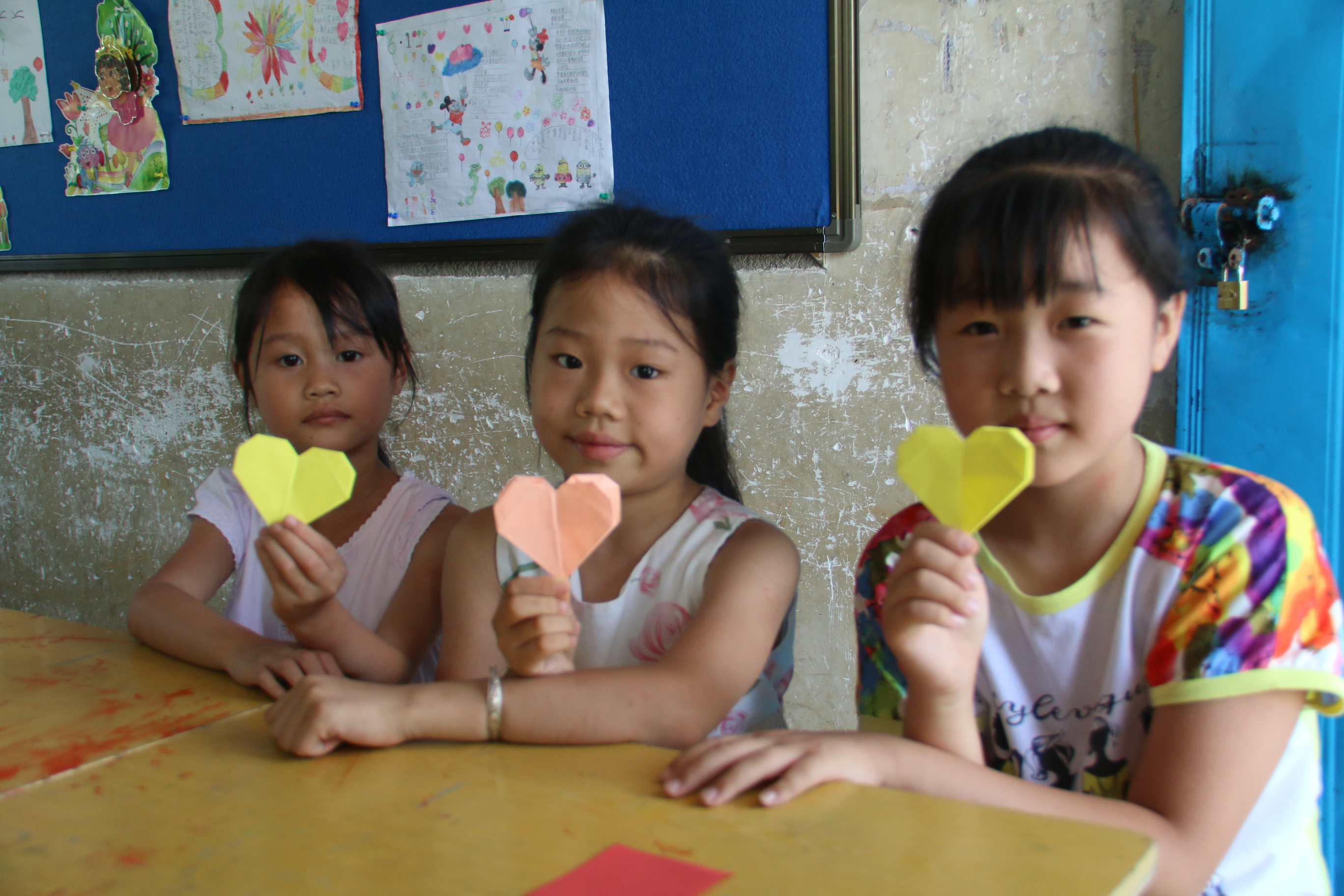 随后进行的是由队员柳哓菊、崔楠教授的折纸课,为纪念七七事变八十周年、祭奠革命先烈,老师教大家围着数字“80”折爱心。带着对革命先烈的崇高敬意和对历史的沉痛惋惜,孩子们拿起不同颜色的纸片,一个一个的折着。“我要向革命先烈学习,长大以后保卫祖国。”一位学生铿锵有力地说道。