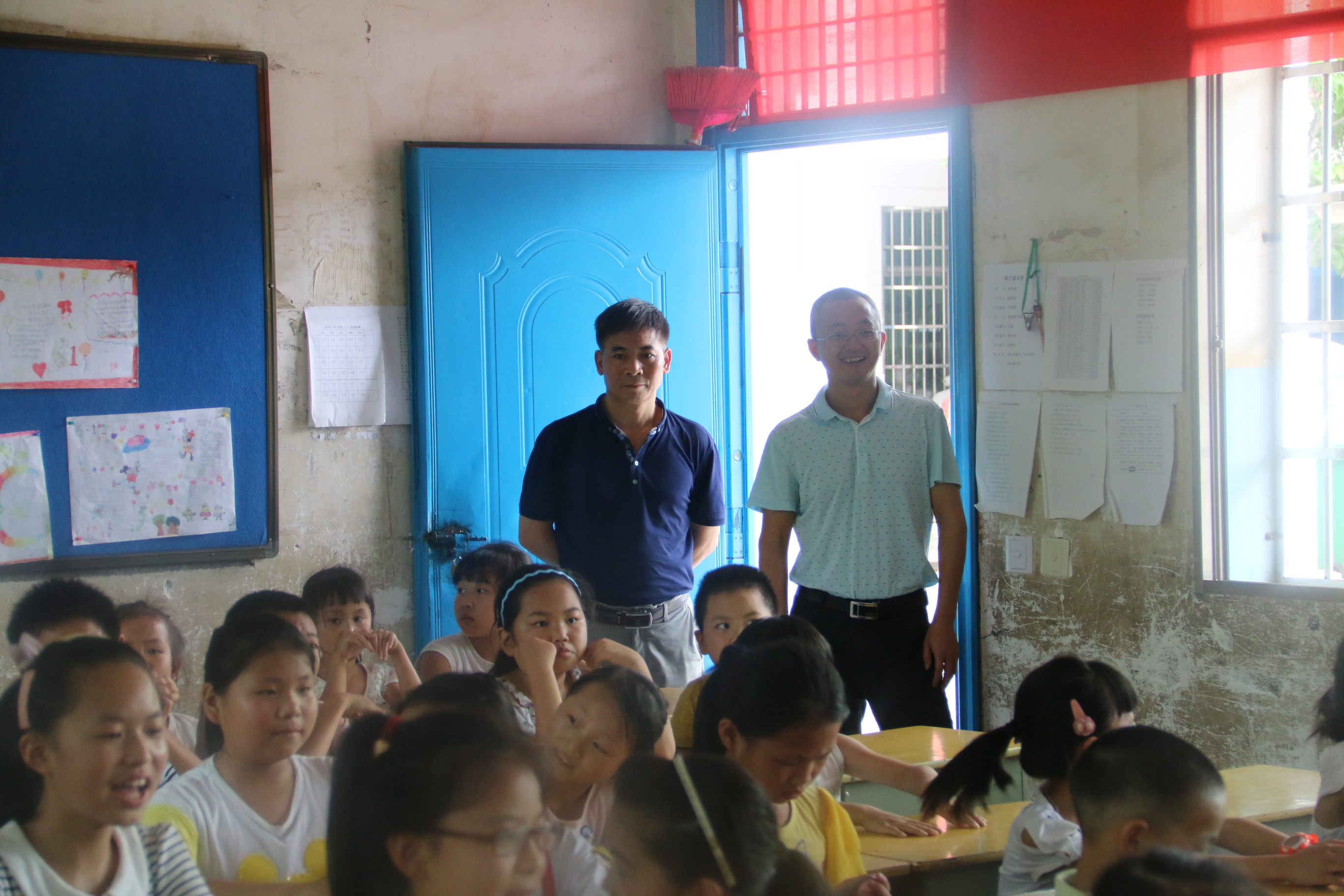 最后,学院领导还到实践队在蒙山镇中心小学开设的假日课堂看望正在上课的队员与小朋友们,肖书记特别提醒队员们应注意小朋友们上下学的安全,同时保证孩子们的饮水量,避免中暑,并鼓励孩子们要认真学习,长大会为家乡蒙山的发展、为祖国的繁荣多做贡献。
