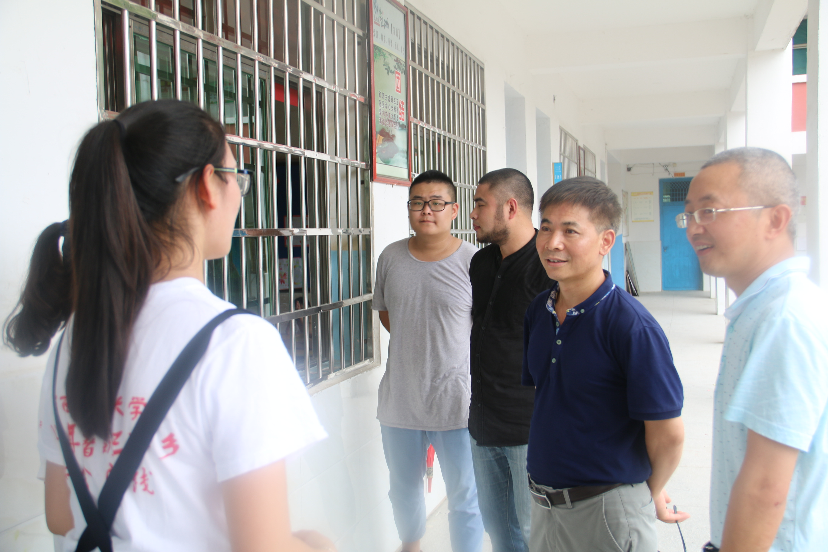 为考察江西师范大学校总队“同心筑梦·青春护航”暑假“三下乡”社会实践成果,慰问和关心队员们的食宿条件与活动情况,2017年7月8日,江西师范大学美术学院党委副书记方旺春、计算机信息工程学院党委副书记肖接增等领导莅临走访了“三下乡”社会实践队所在基地——宜春市上高县蒙山镇中心小学,由实践队带队老师魏庐思雄和周宇峰两位老师进行接待。