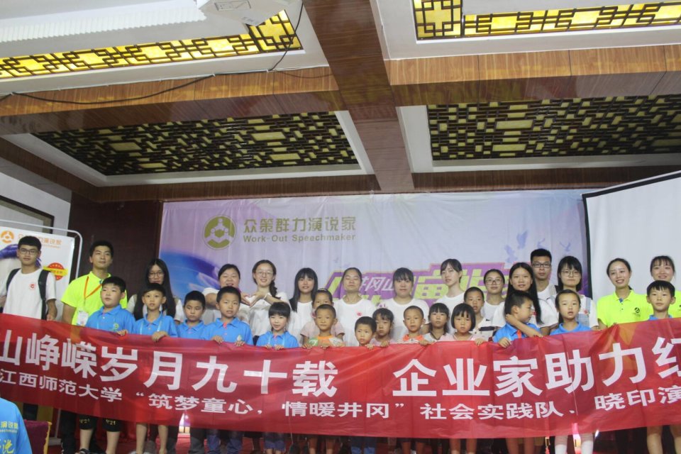 7月3日上午10时,宁冈希望小学的孩子们在三下乡社会实践队队员们的带领下来到革命圣地八角楼,按照事先计划落座,等候企业家晓印老师的到来,一切都进行得有条不紊。今天,晓印老师以“助力中国梦”为中心展开演讲,希望帮助孩子们发现自我、实现梦想。演讲中,晓印老师谈到:知人者智,自知者明。自我介绍是展现自我的重要平台,是实现自我的第一步。但是,要想认识真正的自我,完成准确定位并不是一件容易的事。因而,教学过程中,教师们应该积极进行相关训练,以培养学生自我认知意识,提高自我表达能力,让孩子们更有勇气站上舞台。