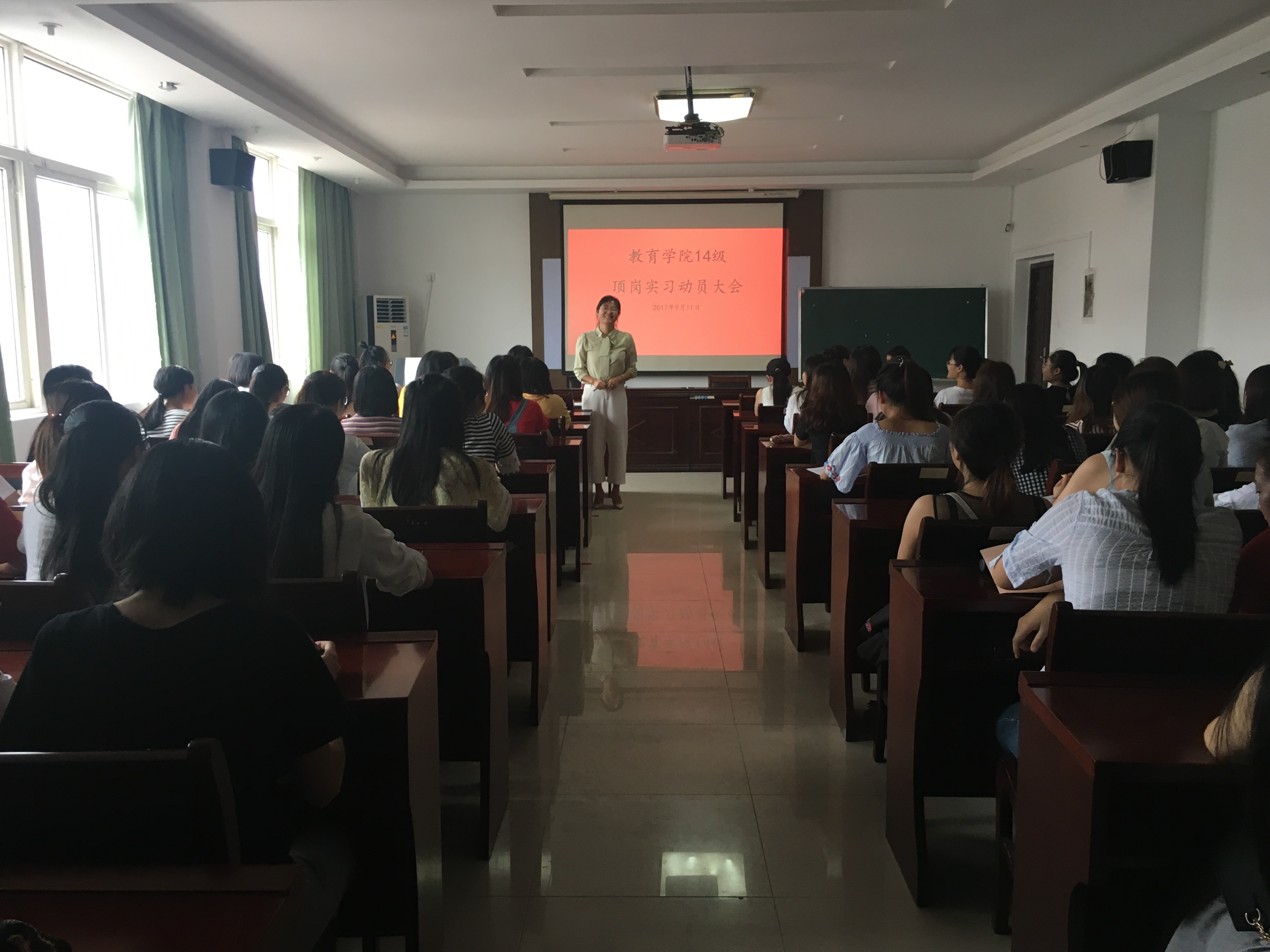 为进一步做好毕业生顶岗实习工作,调动同学们实习的积极性,教育学院于9月11日在洁琼楼401开展了顶岗实习动员大会。会议由14级辅导员曹烨主持,49名参加顶岗实习的同学参加。