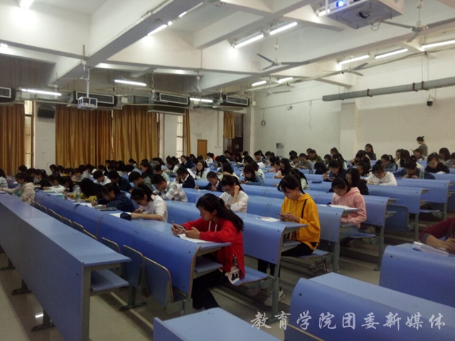 此次考试为开卷考试,考试前同学们积极热烈地探讨中国共青团的知识。考试内容分为选择题、判断题以及简答题三大部分,内容全都是关于我国共青团的由来、任务以及一系列工作章程。考试过程中,同学们认真思考,严肃答题,在面对中国共青团的一系列问题都保持深入了解的心,从内心深处明白了“中国共青团是中国共产党的助手和后备军"。此次活动属于教育学院开展的合格教育活动之一。在考试内容中,题目都以中国特色社会主义理论体系为指导,深入贯彻习近平总书记系列重要讲话精神为核心,以传统考试形式,加强在座共青团员们的政治意识、大局意识、核心意识、看齐意识,目的是为实现未来我中梦之辉煌。
