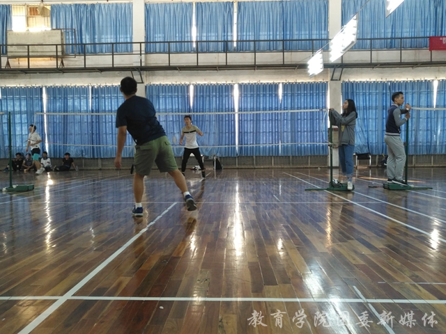 为了丰富课余文化生活,提高身体素质,进一步增进同学之间的情谊,10月31日下午,教育学院在长胜体育场开展了迎新体育活动系列之羽毛球比赛。此次比赛由教育学院学生会体育部组织,全体羽毛球员到场参与。