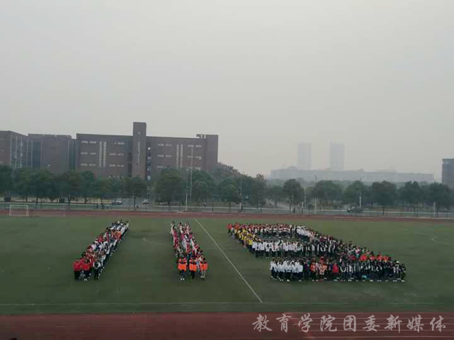 活动伊始,各院参赛者和观众共同在组织人员的指导下,在球场上用身体摆出“119”的图案。通过组织人员在操场上不断的调整人数、位置,一步步修整队形,终于,一个完美的“119”呈现在了C场。飞翔在空中的无人机忠实地记录下这意义非凡的一刻。紧接着,便是消防趣味竞赛。竞赛包括两项内容——抢运生命之水、火海救援。纵是阴沉的天气也阻挡不了教育学院参赛者的热情。在抢运生命之水比赛中,尽管参赛选手们由于飞速地奔跑,桶中的水会时不时地洒出来,他们毅然向着终点奋进。同样的,火海救援中,选手们依旧不负众望,顺利的完成了救援任务。