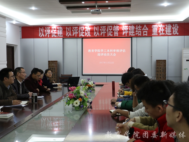 为了让同学们更好地认识到本科教学工作审核评估的重要性,保证其顺利进行,11月21日下午四点半,教育学院在洁琼楼408报告厅召开了学工本科审核评估迎评动员大会。本次大会由党委副书记秦明鹏主持,学院副院长裘指挥等人出席,各年级各班学生代表以及各学生组织主席团参加。