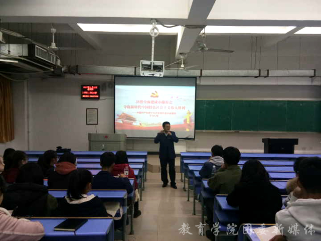 为提升学生干部队伍素质,11月23日晚,教育学院于惟义楼7302教室召开以“学习党的十九大精神”为主题的学生干部培训会议。本次会议由院党委副书记秦明鹏主持,学生会、党员服务站全体成员及2015级、2016级、2017级各班主要学生干部参加。