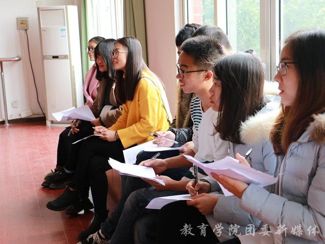 为迎接教育学院2017级迎新晚会,激发同学们参加活动的热情。12月2日下午两点,教育学院迎新晚会初审于洁琼楼104舞蹈教室进行,此次初审由教育学院学生会、党员服务站和心理素质拓展协会的主要学生干部担任评委,全体参选选手共同参加。