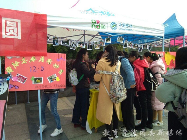 12月5日上午11点,江西师范大学各个院级和校级青年志愿者协会相继聚集于青年文化广场,于广场的四周摆点,通过与同学们做游戏和志愿活动宣传的方式,旨在传递志愿服务理念。