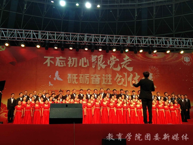 为学习宣传贯彻好党的十九大精神,讴歌党的丰功伟绩,深化师生对党的认识,增强师生爱党之情,坚定师生永远跟党走的理想信念,激发师生跨入新时代的干事创业热情,1月5日下午两点,江西师范大学在瑶湖体育馆举行了“团结杯”大合唱比赛。教育学院师生合唱队以歌曲《在灿烂的阳光下》为参赛曲目积极参加比赛,并取得三等奖的好成绩。