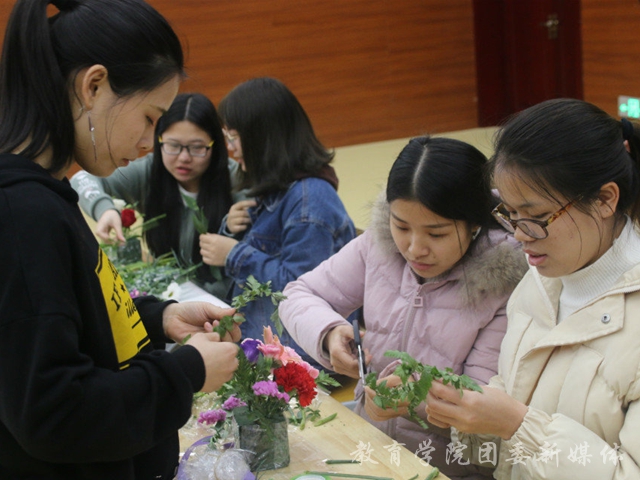 为丰富校园文化生活,关怀我校广大女生,3月13日,主办方教育学院、文旅学院、初等教育学院、免费师范生院、马克思主义学院五院联合于实验楼东305会议室举办花艺沙龙比赛。