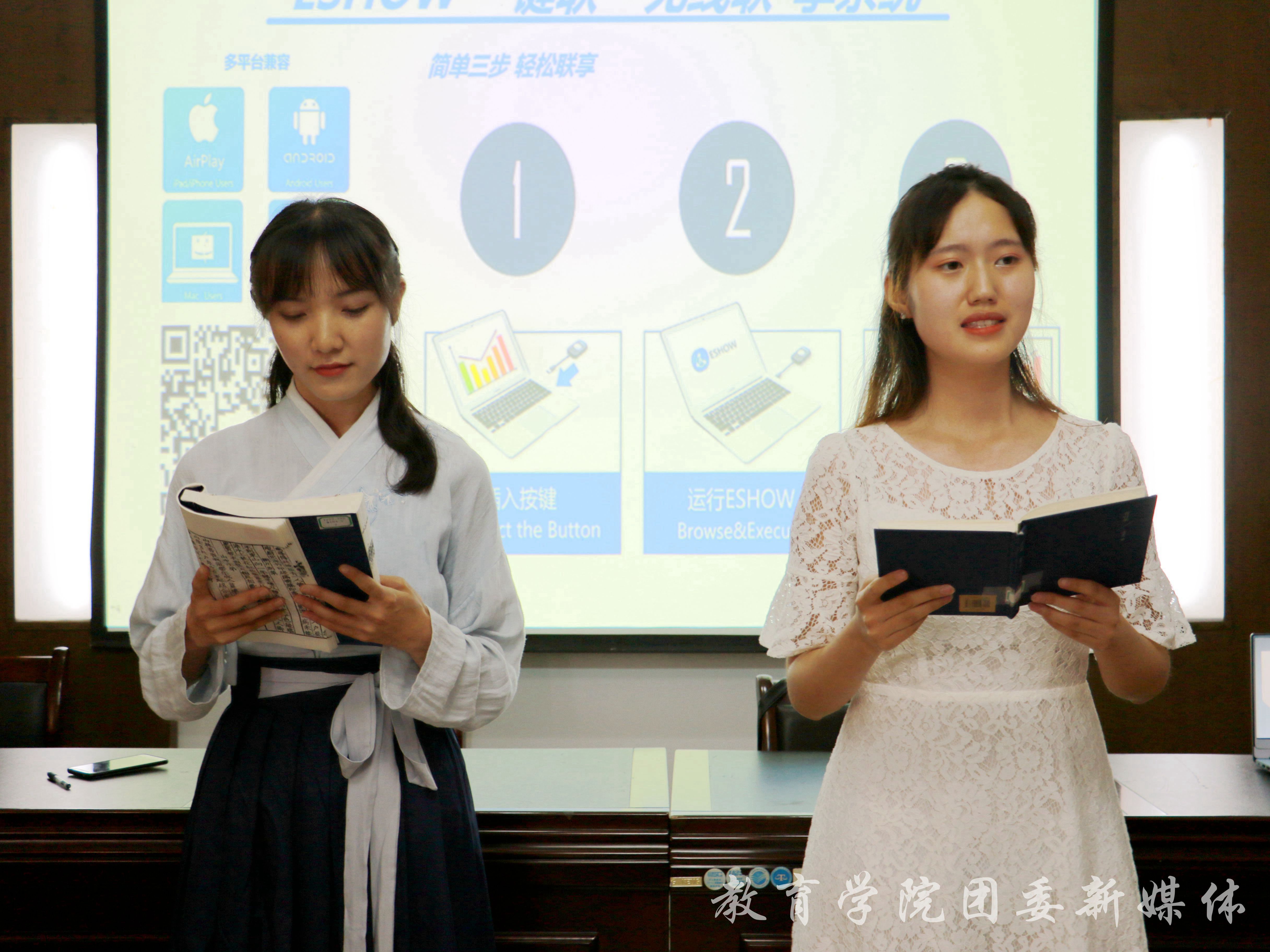 为弘扬中华民族优秀传统文化,促进我校精神文明建设和书香校园建设,4月3日,教育学院于洁琼楼401会议室举办中华经典美文诵读大赛。该次比赛由教育学院学生会学习部组织,学习部部长蔡丽琼主持,分管主席韩笑以及各学干担任评委,全体参赛选手均到场。
