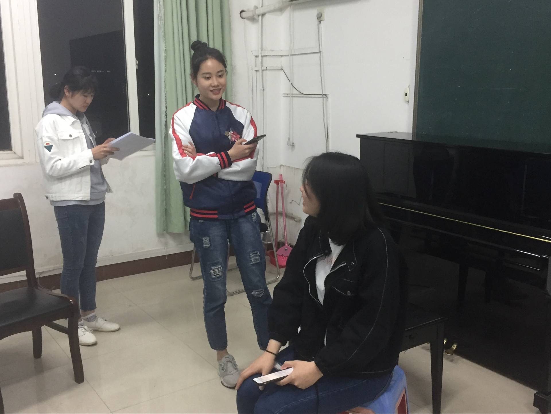 2018年4月8日晚6时40分,教育学院心理素质拓展协会于教育学院s512开展了“心理有梦,剧中有你”心理剧表演的第一次排练。参加此次排练的有教育学院心协副会长万豪、心理剧中心部长田琳、副部长赵雅恬以及张姝悦、严秋霞、邱欣、成缘缘、郭源源等八位演员。