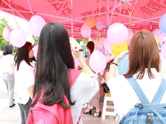 本次活动主要分为两部分内容。第一部分线下活动,工作者先将气球绑好,鼓励同学们将寄语写在气球上,同学们可以将写了自己寄语的气球带走,同学们积极参与本次寄语活动,帐篷里挂满了写满同学们寄语的气球。第二部分线上活动,工作者提前在网络上收集班上同学的青春感言,梦想寄语,选出一些好的寄语进行分享。本次活动在工作者的热情接待和全校同学的积极参与下圆满结束。活动结束后,全体工作人员一起拍照留念。