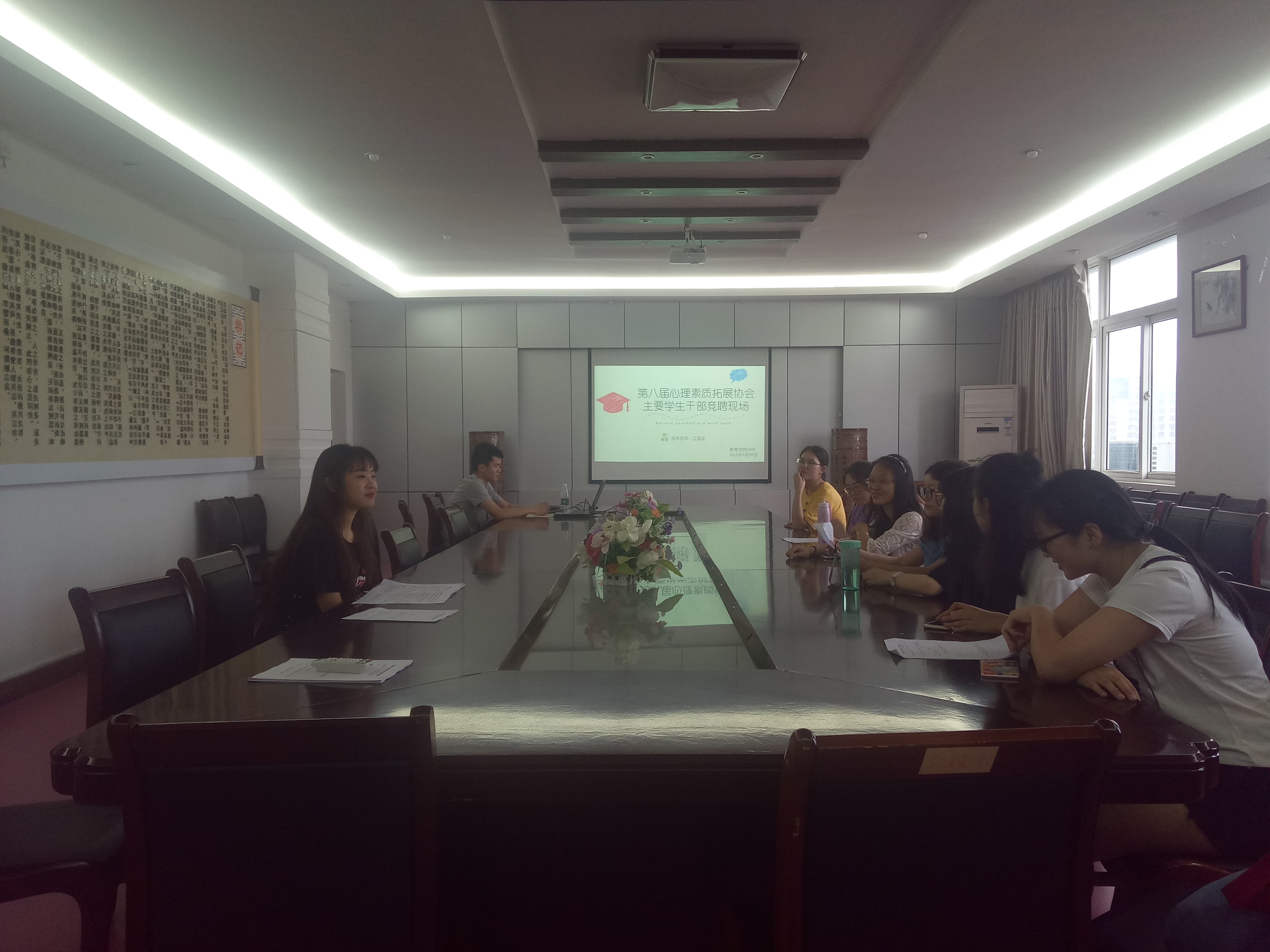 2018年5月30日下午5时20分,为了更好的发展教育学院心理素质拓展协会,为心协管理层注入新鲜血液,我院心理素质拓展协会在洁琼楼S401和S408教室开展了换届选拔工作。参加此次换届工作的有所有现任主席团成员、部长、副部长和前来面试的教育学院学生。