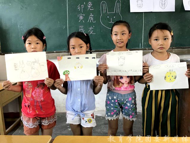 为了让学生感受艺术的魅力,7月9日,江西师范大学化学化工学院、教育学院、文学院与数信学院联合组成的“培育新希望,助力新时代”于都分队队员在于都县岭背镇上营小学进行暑期社会实践的第二天,教育学院开展了以绘画为主题的教学活动。
