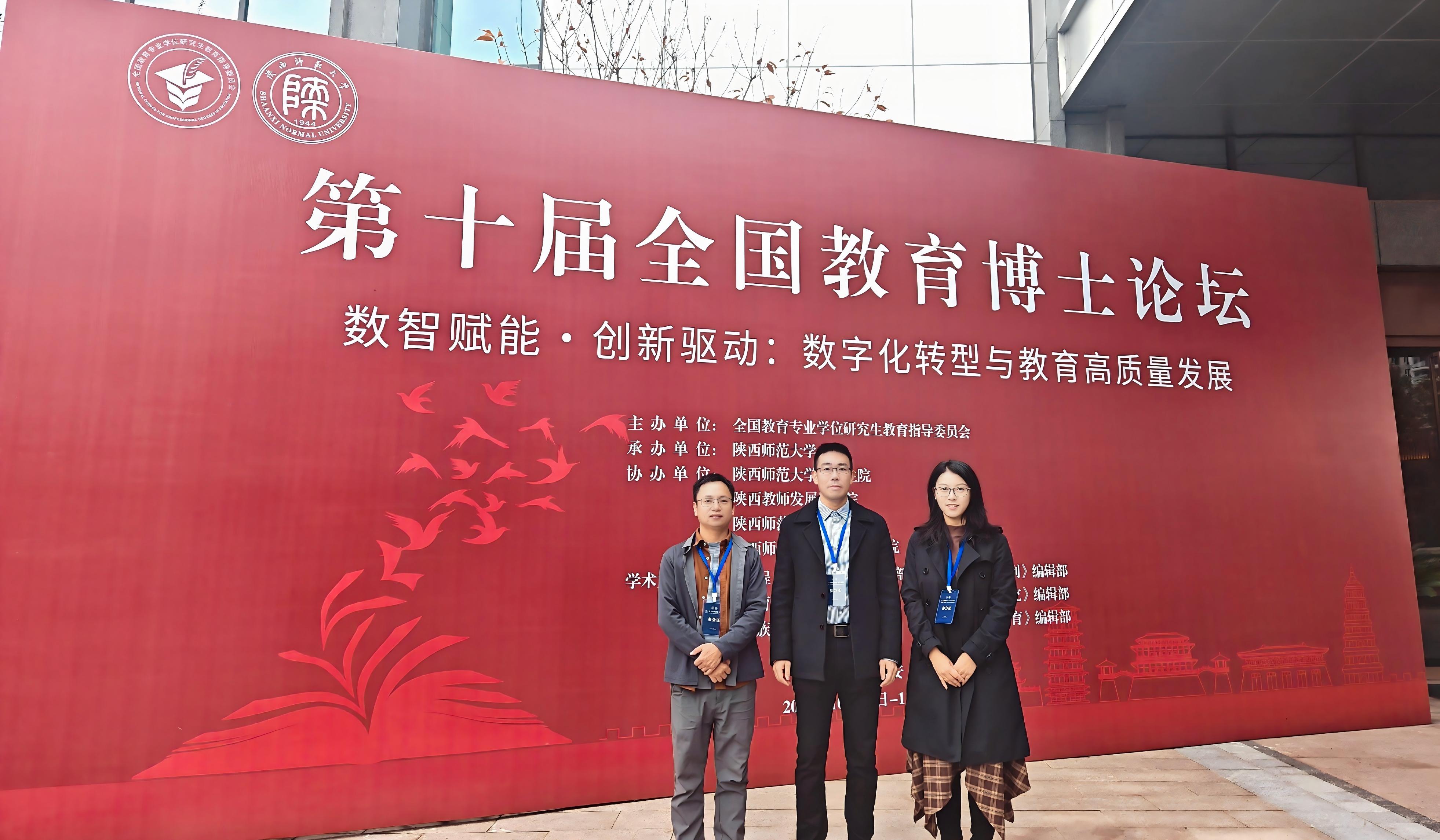 10月31日至11月2日,第十届全国教育博士论坛在西安隆重举行。本次论坛由全国教育专业学位研究生教育指导委员会主办,陕西师范大学承办,论坛以“数智赋能·创新驱动:数字化转型与教育高质量发展”为主题,来自全国48所教育博士培养单位、研究机构和教育期刊社的300余名教育学科领域专家与教育博士代表齐聚一堂,共话数智时代教育博士高质量发展。我院副院长赵志纯带领教育博士生阳小波、陈亚薇等人赴西安参会,与全国专家学者及同行展开深入交流学习。