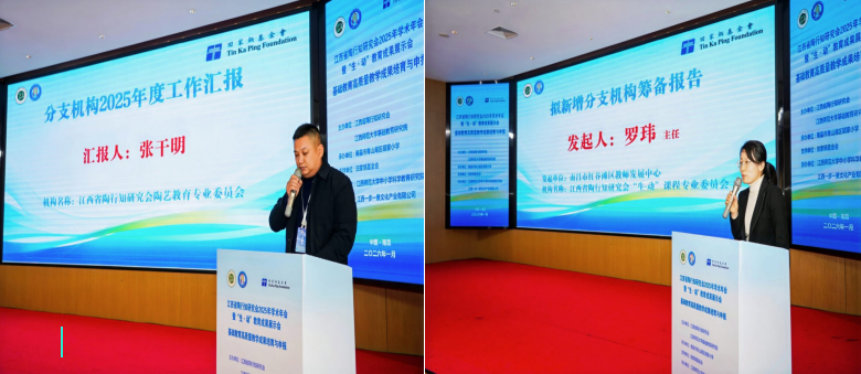 第二个阶段是学会工作布置,会议由江西省陶行知研究会副会长兼秘书长、江西师范大学附属中学校长朱斌主持。首先,景德镇市浮梁县第一小学张干明校长代表省陶研会陶艺教育专业委员会向大会汇报2025年工作开展情况、南昌市红谷滩区教师发展中心罗玮主任作为新增机构发起人代表向大会报告省陶研会“生·动”课程专业委员会的筹备情况。会上,还对新增的37个单位会员举行了授牌仪式,紧接着会议选举产生76位新任理事、37位新任常务理事,选举产生黄小平同志为新任副秘书长、崔铭香和汪海燕两位同志为省陶研会新任学术委员。随后,有条不紊地展开年会征文颁奖、重点资助课题立项证书与案例分享嘉宾证书发放、首届“扬陶育人示范单位”与“扬陶育人模范个人”颁奖表彰等各项学会工作。