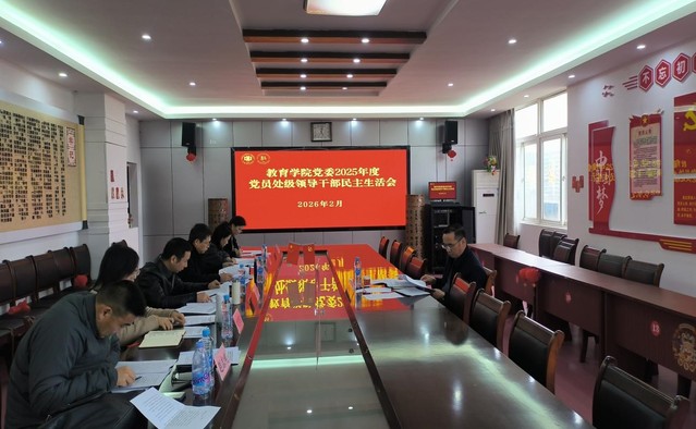 根据学校党委工作部署,2月27日下午,教育学院在洁琼楼408会议室召开2025年度党员处级领导干部民主生活会。校党委常委、副校长钟业喜莅会指导并作点评,学院党委班子成员参加会议,非党员的院班子成员和科室负责人、教师党员代表列席会议。会议由学院党委书记毛明斌主持。