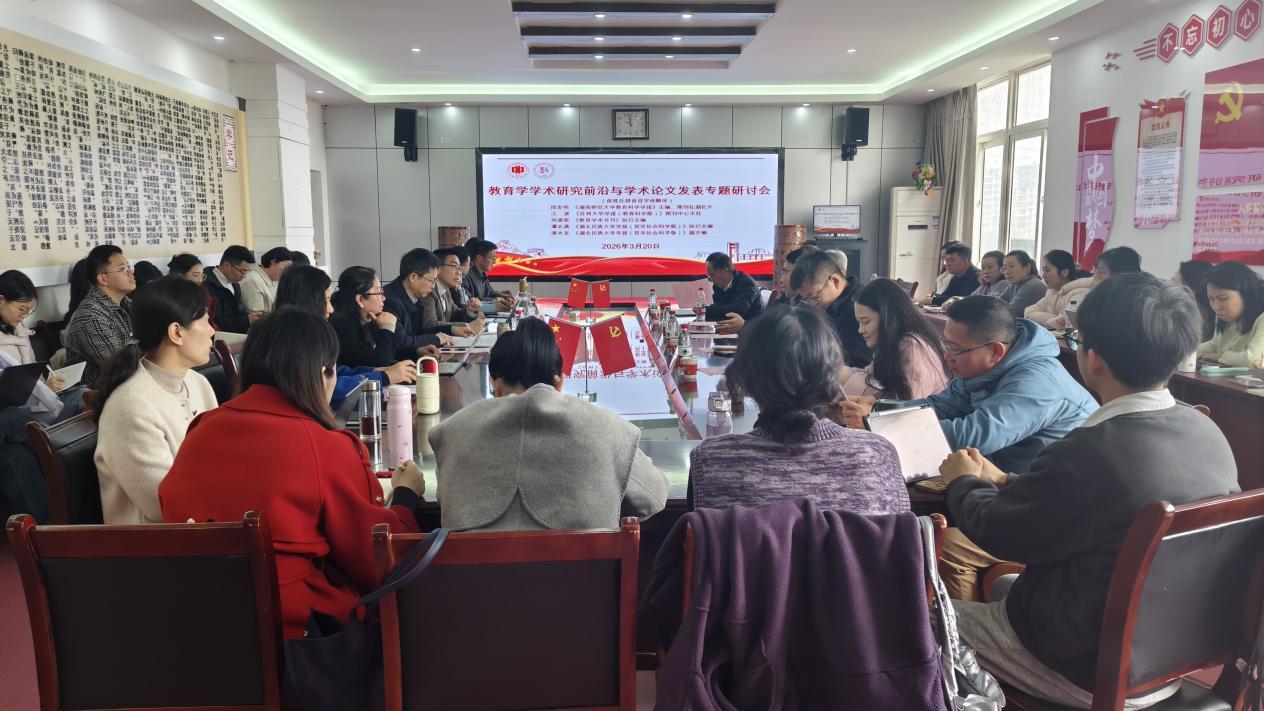 2026年3月20日,教育学院在洁琼楼408会议室举办专题研讨会。本次会议以“教育学术研究前沿与论文撰写”为主题,特邀CSSCI期刊《湖南师范大学教育科学学报》主编,期刊社副社长段发明教授、《苏州大学学报(教育科学版)》期刊中心主任江波教授、《湖北民族大学学报(哲学社会科学版)》执行主编谭志满教授、《湖北民族大学学报(哲学社会科学版)》副主编邹太龙副教授、《教育学术月刊》执行主编刘清荣研究员等期刊专家齐聚一堂,开展指导交流。教育学院行政负责人杨南昌教授出席会议,学院部分中青年教师、博士生参加了本次研讨座谈。会议由副院长赵志纯主持。
